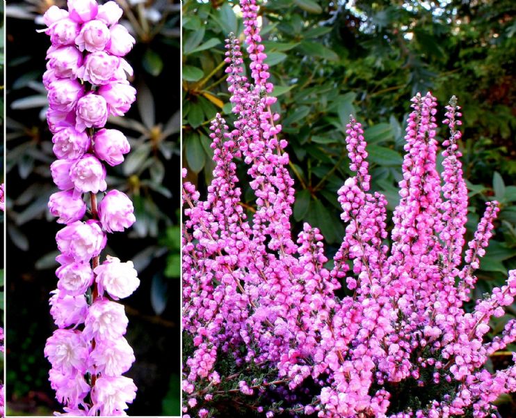 Talrige fyldte, violetrosa blomster i august-november. Mørkegrønt løv.