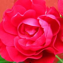 Blomsten er karminrød med fløjlsglans, stor og fyldt.